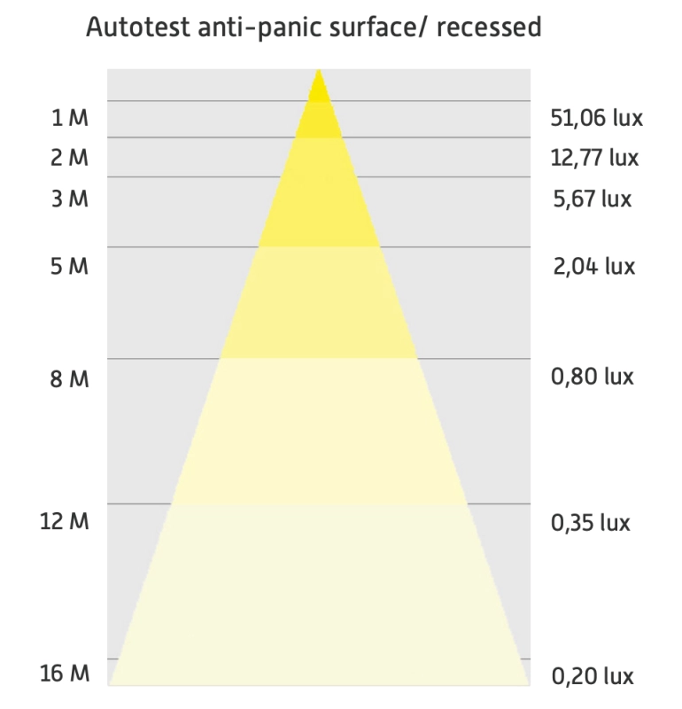 Dit anti-paniek noodverlichtingsarmatuur met witte behuizing en 3-fase adapter zorgt voor oriëntatieverlichting bij spanningsuitval. Het armatuur wordt geleverd met twee lenzen, een 120° lens en een corridor lens (rechthoekige lichtbundel geschikt voor gangen). Uitgevoerd met AT-autotest functie, testknop en 3 uurs duurzame LifePo4 accu. Als het armatuur is aangesloten op de netspanning en naar behoren werkt brandt een groen indicatieledje. Zodra de netspanning uitvalt schakelt het armatuur over op de accu en gaat de powerled branden.